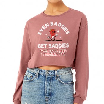 Even Baddies Get Saddies Cropped Long Sleeve Sweatshirt – Retro Women’s Crop Top – Mental Health Long Sleeves Pullover