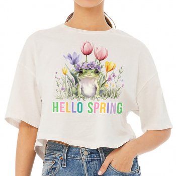 Hello Spring Frog Cropped T-Shirt – Springtime Trendy Tee – Cute Frog Women’s Basic T-Shirt