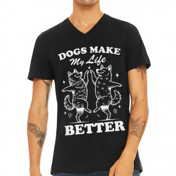 Dogs Make My Life Better V-Neck T-Shirt – Cute Dogs Basic T-Shirt – Vintage Animal Tee