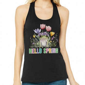 Hello Spring Frog Racerback Tank – Cute Frog Tank Top – Springtime Tank
