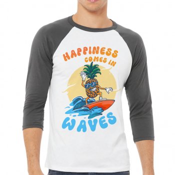 Happiness Comes In Waves Baseball T-Shirt – Surfing Pineapple 3/4 Sleeve – Ocean Raglan Jersey Shirt