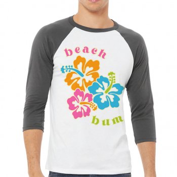 Beach Bum Baseball T-Shirt – Hibiscus 3/4 Sleeve – Retro Raglan Jersey Shirt