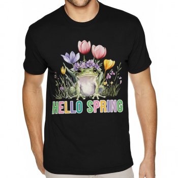 Hello Spring Frog T-Shirt – Cute Frog Heavy Cotton Tee – Springtime Shirt