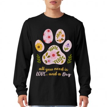 All You Need Is Love and a Dog Long Sleeve T-Shirt – Paw Print T-Shirt – Boho Dog Basic Tee