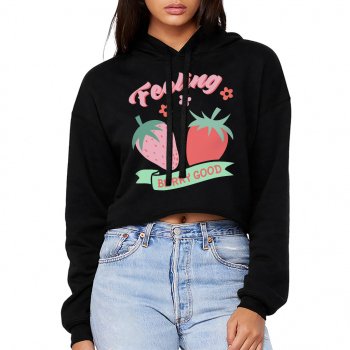 Feeling Berry Good Women’s Cropped Hoodie – Retro Strawberry Hooded Sweatshirt – Pink Graphic Super Crop Top Hoodies