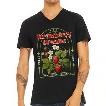 Strawberry Dreams V-Neck T-Shirt – Trendy Basic T-Shirt – Vintage Inspired Tee