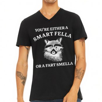 Are You A Smart Fella Or Fart Smella V-Neck T-Shirt – Raccoon Meme Basic T-Shirt – Funny Tee