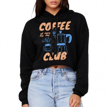 Coffee Club Women’s Cropped Hoodie – Coffee Lover Hooded Sweatshirt – Aesthetic Super Crop Top Hoodies