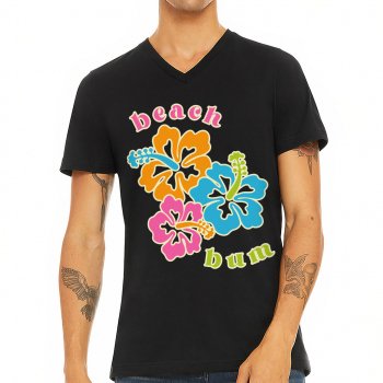 Beach Bum V-Neck T-Shirt – Retro Basic T-Shirt – Hibiscus Tee