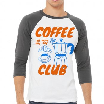 Coffee Club Baseball T-Shirt – Aesthetic 3/4 Sleeve – Coffee Lover Raglan Jersey Shirt