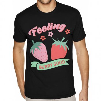 Feeling Berry Good T-Shirt – Pink Graphic Heavy Cotton Tee – Retro Strawberry Shirt