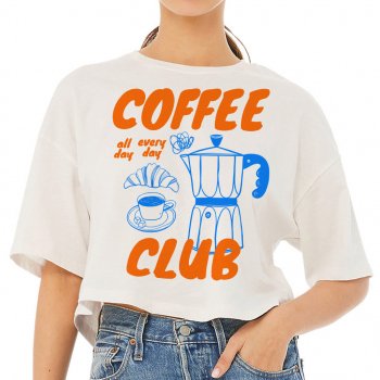 Coffee Club Cropped T-Shirt – Coffee Lover Trendy Tee – Aesthetic Women’s Basic T-Shirt