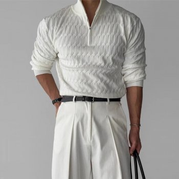 Men’s Luxury Knit Mock Turtleneck Zipper Pullover