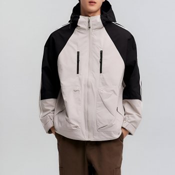 Men’s Spring Patchwork Hooded Jacket – Waterproof, Windproof, and Stylish