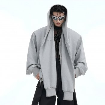 Men’s Double-Layer Hooded Sweatshirt with Padded Shoulder and Loose Fit