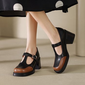 Spring Women’s Split Leather Chunky Heel Mary Jane Pumps