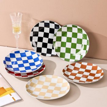 Irregular Nordic Ceramic Chessboard Plaid Plate