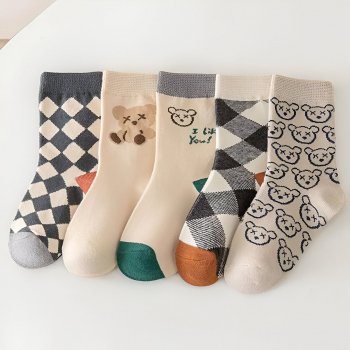 5 Pairs Cute Bear Print Baby Socks