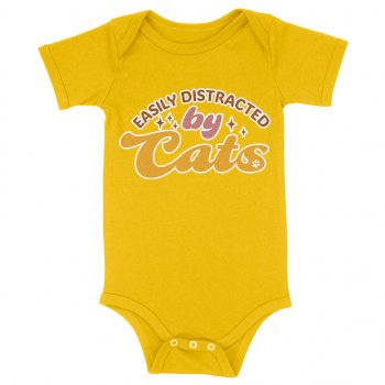 Easily Distracted By Cats Baby Onesie – Cat Lover Baby Bodysuit – Funny Cat Baby One-Piece