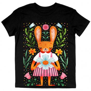 Cute Rabbit Kids’ Cotton T-Shirt – Boho Short Sleeve Tee – Spring Bunny T-Shirt for Kids