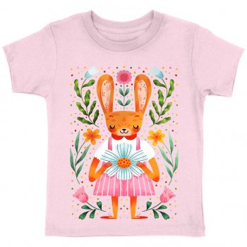 Cute Rabbit Toddler Cotton T-Shirt – Boho Short Sleeve Tee – Spring Bunny T-Shirt for Kids
