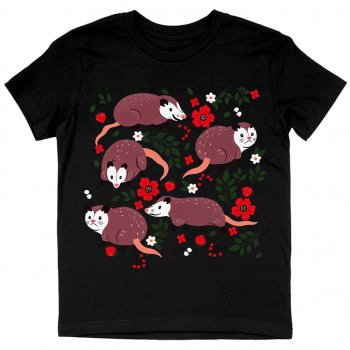 Cute Opossums Kids’ Cotton T-Shirt – Possum Short Sleeve Tee – Cottagecore T-Shirt for Kids