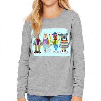 Skating Friends Kids’ Long Sleeve T-Shirt – Kids Art T-Shirt for Kids – Bright Colorful Tee for Boys Girls