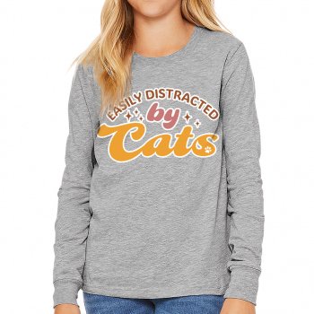 Easily Distracted By Cats Kids’ Long Sleeve T-Shirt – Cat Lover T-Shirt for Kids – Funny Cat Tee for Boys Girls