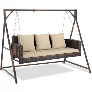 3-Seat Outdoor Porch Swing with Stand – Adjustable Canopy & Convertible Swing Bed