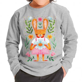 Cute Rabbit Toddler Long Sleeve T-Shirt – Boho Boy Girl Tee – Spring Bunny T-Shirt for Kids
