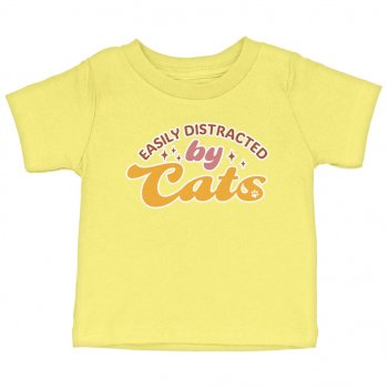 Easily Distracted By Cats Baby T-Shirt – Cat Lover T-Shirt for Kids – Funny Cat Short Sleeve Tee