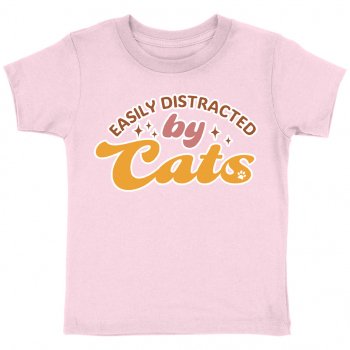Easily Distracted By Cats Toddler Cotton T-Shirt – Funny Cat Short Sleeve Tee – Cat Lover T-Shirt for Kids