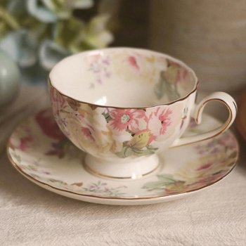 Vintage French Ceramic Tea Cup with Matching Tray