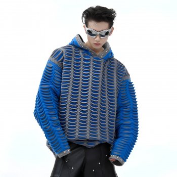 Men’s Contrast Patchwork Knitted Hooded Sweatshirt – Thick & Stylish Sweater