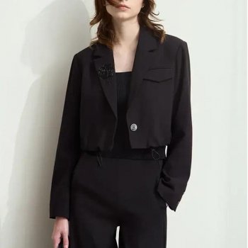 Floral & Football Embroidery Crop Jean Jacket – Women’s Button Down Coat