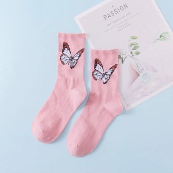 Soft Cotton Butterfly Print Socks