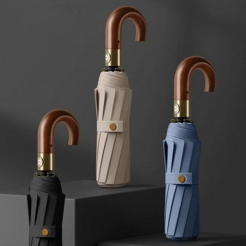 Large Automatic Folding Umbrella with Wooden Handle