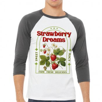 Strawberry Dreams Baseball T-Shirt – Trendy 3/4 Sleeve – Vintage Inspired Raglan Jersey Shirt