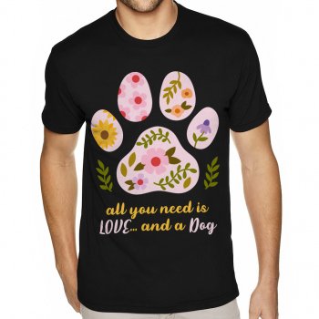 All You Need Is Love and a Dog T-Shirt – Boho Dog Heavy Cotton Tee – Paw Print Shirt