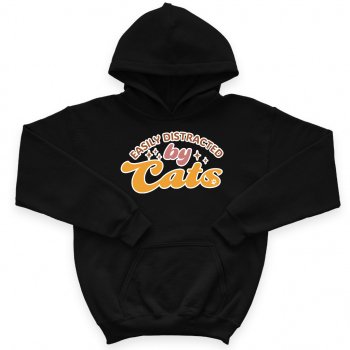 Easily Distracted By Cats Kids’ Hoodie – Cat Lover Hooded Sweatshirt – Funny Cat Hoodie for Kids
