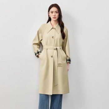 Women’s Long Trench Coat with Turn-Down Collar for Spring