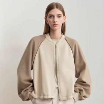 Women’s Baseball Collar Woolen Jacket with Embroidered Detail
