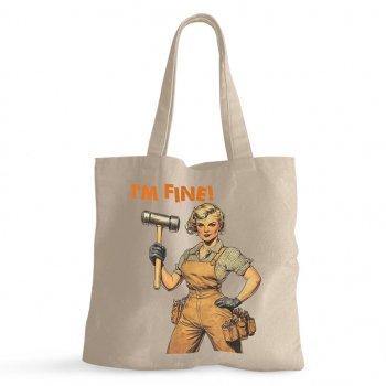 I’m Fine 100% Cotton Tote Bag – 60s Style Grocery Shopping Cloth Bag – Funny Retro Eco-friendly Tote Bag