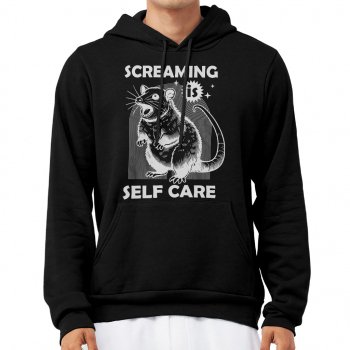 Screaming Is Self Care Hoodie – Animal Humor Hooded Sweatshirt – Possum Unisex Hoodie
