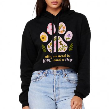All You Need Is Love and a Dog Women’s Cropped Hoodie – Boho Dog Hooded Sweatshirt – Paw Print Super Crop Top Hoodies