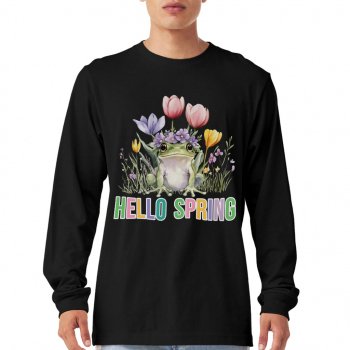 Hello Spring Frog Long Sleeve T-Shirt – Cute Frog T-Shirt – Springtime Basic Tee