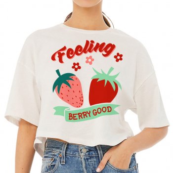 Feeling Berry Good Cropped T-Shirt – Pink Graphic Trendy Tee – Retro Strawberry Women’s Basic T-Shirt