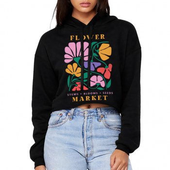 Flower Market Women’s Cropped Hoodie – Cottagecore Hooded Sweatshirt – Wildflowers Super Crop Top Hoodies