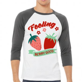 Feeling Berry Good Baseball T-Shirt – Retro Strawberry 3/4 Sleeve – Pink Graphic Raglan Jersey Shirt