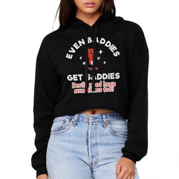 Even Baddies Get Saddies Women’s Cropped Hoodie – Mental Health Hooded Sweatshirt – Retro Super Crop Top Hoodies